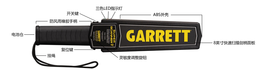Super Scanner?V 蓋瑞特GARRETT 1165190手持式金屬探測器是美國原裝進口探測器,其配件都是采用優(yōu)質元器件制作,掃描面積大、性能穩(wěn)定、耐用,操作簡單、外型輕穎美觀,聲音清脆響亮,主要用于需要探測金屬的場所,如保安日常金屬防盜檢查,考場,學校防止攜帶通訊工具進行作弊的檢查工作,以及未列明的金屬探測場所等。使用該手持式金屬探測器進行人身檢查可以避免人工搜查帶來的人權糾紛。手持式金屬探測器用于檢查人身攜帶金屬的具體位置,也可配合金屬探測門使用,即可找到藏有金屬物品的準確位置。