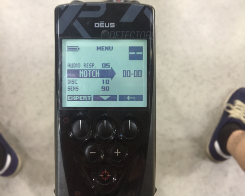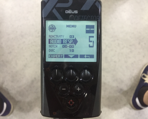 AUDIO RESP音頻回路調(diào)節(jié)到5,這個(gè)功能想必玩過XP DEUS金屬探測器的朋友都知道,這個(gè)功能可以增加遠(yuǎn)處信號的聲音。它的最大值是7,為什么小編調(diào)節(jié)到5而不調(diào)節(jié)到7呢,那是因?yàn)橐纛l回路調(diào)節(jié)太高,往往也會放大干擾信號的聲音,所以5是比較適中的。