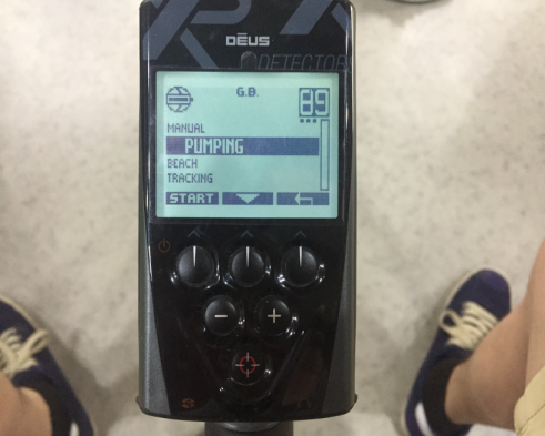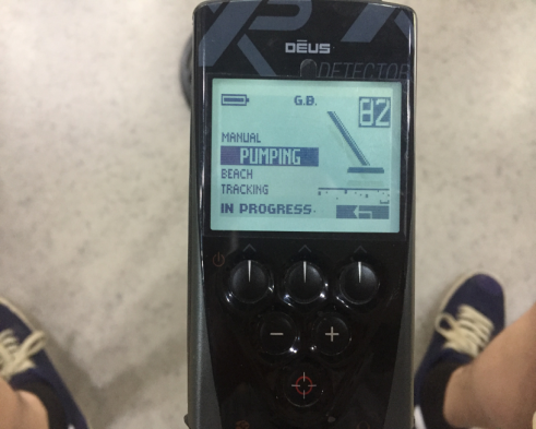 最后需要調(diào)節(jié)的就是地平衡功能,PUMPING抽送式地平衡。當(dāng)遙控器上顯示GB.OK即可。這樣如果銀元上方蓋著鐵金屬,XP DEUS金屬探測器就可以穿透鐵金屬去探測的信號了。